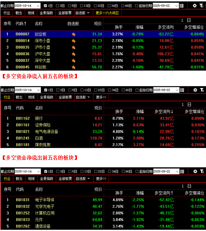 通过资金动向数据显示,六大战区的资金进出情况如下: