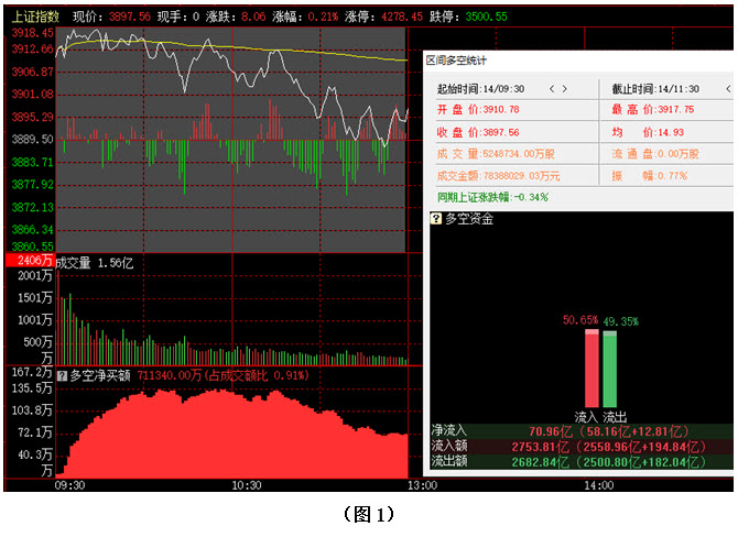今日早间大盘直接高开在3900点整数关口上方,可惜多方未能趁势上攻,10点后市场开始逐步回落,至中午收盘时,指数位于3897点。从日K线图上看,尽管今天上午大盘高开后出现回落,但指数完全运行在5日成本均线上方,市场短期走势并未重新转弱,所以只要多方继续发力,行情仍有进一步向上攀升的可能。从下方的多空资金来看,早间开盘后,多方就占据优势,且资金一度快速流入,10点后尽管随着大盘逐步回落,场内抛压有所增加,但资金始终保持着翻红状态。截止到中午收盘时,沪市当中多方力量高于空方超过1个百分点,资金流入70多亿。从六大战区的情况分别来看,截止到今日中午收盘时,创业板战区与科创板战区均为资金流出状态,其中科创板战区资金流出47亿,创业板战区资金流出83亿;其余四个战区则均为资金流入,不仅深中大盘战区资金流入超过30亿,沪中大盘战区的资金流入额更是高达106亿。可见今日上午整体上资金还是以流入为主,但由于空方力量主要集中在创业板战区与科创板战区,导致大量科技类个股出现回落,所以对场内的多方人气造成了较大影响。在这种情况下,短期内行情很可能还会在3900点附近反复震荡。建议大家控制好仓位,同时密切关注场内多空资金的进出情况,若接下来多方资金能够连续进场,行情在震荡整固之后就有望继续向上攀升;反之,如果多方后续无力,空方连续施压,市场则会出现进一步下探,操作上需以谨慎为主。