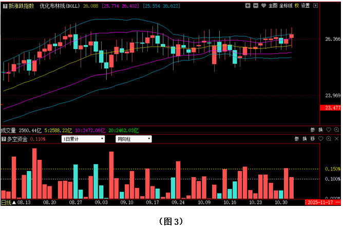 今日两市上涨个股共3535只,其中涨幅超过3%的个股618只,涨幅在9.9%以上的个股88只;下跌个股共1801只,其中跌幅超过3%的个股263只,跌幅在9.9%以上的个股12只。图3所示为指南针特有的0Z指数K线图,从图中可以看到,今日0Z指数延续上周五的走势,继续向上小幅攀升,再收一根阳线。至此0Z指数不仅已将上周四的阴线完全吞没,且收盘位置与8月26日的收盘位置基本持平。可见今日场内多数个股都出现了连续上涨,而近期0Z指数更是连续多日稳定运行在优化布林线中轨上方,所以市场整体走势仍相对较强。从下方的多空资金来看,今日多空资金为流入状态,虽然资金流入量比上周五略有减少,但资金的连续流入足以说明目前投资者的做多热情依然较高。在这种情况下,0Z指数将有望突破8月26日之后震荡区间的上沿位置,为后市打开进一步向上的空间。