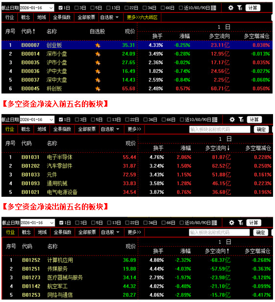 (1月16日午评,北京指南针科技发展股份有限公司提供)
