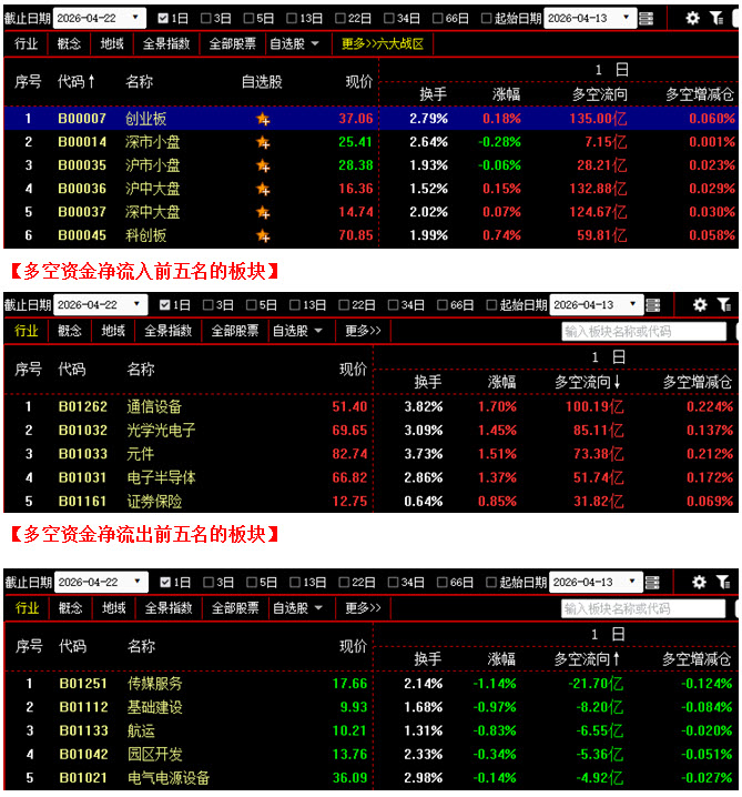 (4月22日午评,北京指南针科技发展股份有限公司提供)