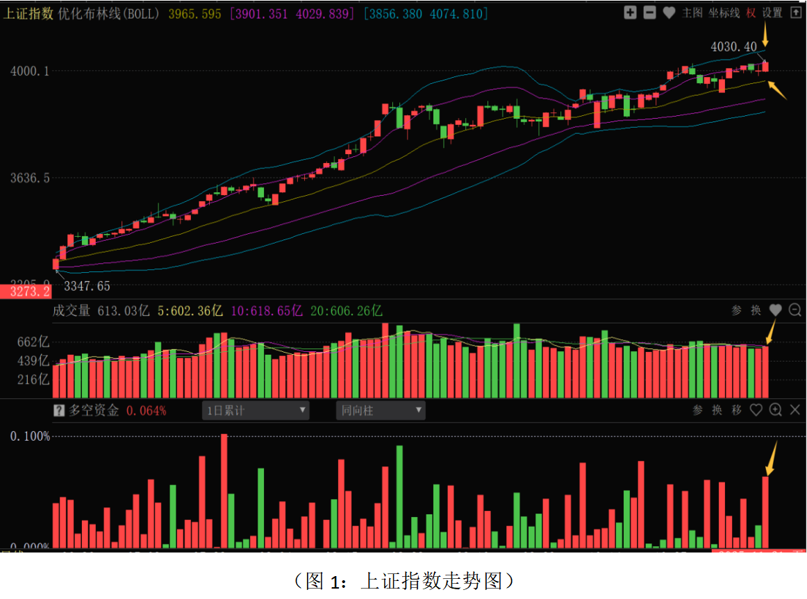 从上证指数走势来看:股指反复围绕4000点整数关口震荡,并且多次易手,成交量总体处于萎缩状态,可以看出近期资金整体参与积极性不高。主要原因有以下几点,第一点,目前4000点是心理重要关口,技术上距离6124点和5178点连线的下降趋势线(4100点左右)较近,重要技术关口资金有一定的观望态度。第二点,前三季度GDP增速5.2%,超市场预期,市场对四季度经济政策出台的急迫性和力度预期降低,政策整体处于真空期阶段;第三点,上周公布的10月份经济总体处于下滑状态,其中固定资产投资、房地产、工业增加值增速均处于较低的水平,尤其是社会消费品零售总额数据增速创新低。第四点,中日关系紧张引发资金的避险情绪。总体上,中期政策层面会保持稳定性和延续性,但近期政策没有进一步发力的背景下,经济数据下滑和外部因素会影响短期股市运行节奏,也加大了4000点整数关口的多空争夺激烈程度。上周五股指冲高回落,走势“阴包阳”走势,对短期市场信心有一定的挫伤,同时5日成本均线失守,多空资金净流出96.33亿元,短线资金有一定的畏高和获利了结的动作,短线股指可能会考验8月底以来对股指震荡上行起到稳定支撑的13日成本均线,如果该位置失守市场震荡的幅度会加大。从优化布林线指标来看,股指上攻中上轨位置后回落,目前考验中轨位置支撑,中轨位置是波段趋势的分水岭,也是多方的重要防守位置,如果有效跌破,不排除股指会考验中下轨位置的支撑(3920点一带)。同时,管理层定调强化战略性力量储备和稳定市场机制建设,提升资本市场内在稳定性,坚决防止市场大起大落、急涨急跌。稳经济政策方面,国务院常务会议研究深入实施“两重”建设有关工作,增强供需适配性是进一步释放消费潜力、畅通经济循环的有效举措。虽然近期超预期政策落地预期不高,但中期政策的稳定和延续性对市场中期走势起到稳定的作用。目前市场围绕4000点的震荡走势,形态上是对8月底到10月底平台突破后的震荡走势,3900点上沿位置有一定的支撑。在重要技术关口,以及政策真空期阶段,股指会围绕3900-4100点强势震荡。从0Z指数走势来看:股指创出新高后再度震荡,上周五多空资金净流出270亿元,显示前高位置资金仍有一定的分歧。拉长时间周期来看,市场连续小幅修复之后,再度临近2019—2022年大平台位置,该平台有较强的技术和心理压力,能否突破需要政策和基本面逻辑的进一步强化。在政策真空期以及成交量总体萎缩的市况下,短期板块、个股普涨突破的可能性不高,板块和个股仍会高低切换、快速轮动,股指大概率以横向整理为主。操作上应采取稳健应对策略,总仓位控制在六成左右,底仓持股为主,浮动仓位根据个股的资金流向和决策信号做好动态调整,紧盯大盘关键技术压力的资金流向做好高抛低吸操作。
