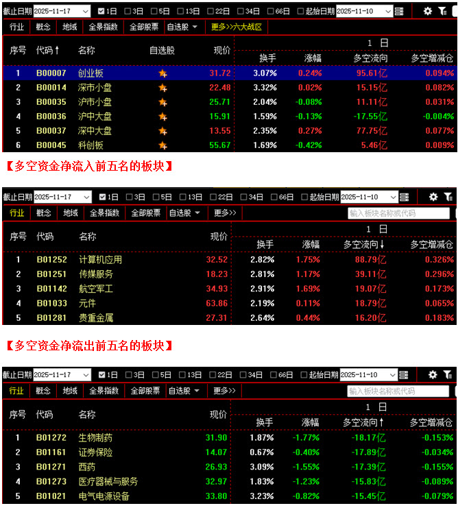 (11月17日午评,北京指南针科技发展股份有限公司提供)