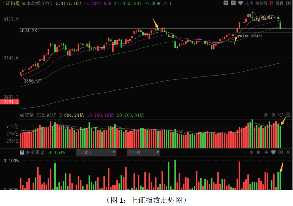 从上证指数走势来看:昨日股指出现较大幅度的下跌,多空资金净流出278.58亿元,并跌破34日成本均线,短期呈现较弱的走势。对于市场短期大幅急跌的走势原因主要有两点:第一点,上周五隔夜黄金、白银期货价格出现近10年的大幅调整走势,传导到A股市场,对前期大幅上涨的贵重金属、普通有色、化工资源品等热门板块形成直接利空,加速获利盘的抛压。前期交易所提高融资保证金政策,已经对短期资金做多积极性有一定平抑,在主线板块大幅回落下,市场整体避险情绪上升,甚至导致盘中出现恐慌性的抛售。第二点,1月31日沪深两市业绩预告披露完毕,前期大幅炒作的部分高估值题材股由于业绩预亏或预减,业绩风险在昨日盘面上集中释放,一定程度上加大了资金短期离场动作,制约了题材股的活跃力度和限制了资金板块轮动的操作。由于贵金属、普通有色等板块前期涨幅较大,多只个股巨额挂单封跌停,整体板块短期仍有惯性下探的空间,相关板块中个股很多是一线或二线蓝筹股,短期下探对大盘走势仍有一定影响,股指仍有下探的动能。技术上,股指已经跌破34日成本均线,走势趋弱,同时1月5日K线在3977.54-3983.58点留有跳空缺口,短线对股指有一定的牵引,股指有回补该缺口的可能。中期走势来看,目前股市估值总体处于中低位,一季度是全年财政政策发力的重要时段,叠加节后两会的政策预期。同时,管理层多次强调:全力巩固资本市场稳中向好势头,防止市场大涨大跌,短期指数急调后不具备连续大跌的风险,指数在去年10-11月份平台位置(3950-4000点)有较强支撑,不排除在此支撑位置国家队资金有稳定市场操作的可能。春节假期临近,资金观望气氛会增加,市场总体将以稳定走势为主,近期指数可能会围绕4000点上下震荡。从0Z指数走势来看:股指明显下跌,跌破5日、13日、34日成本均线,全市场超4600只个股下跌,上涨股票家数不足800只,目前股指跌破1月中旬小平台位置,市场整体走势较弱。多空资金净流出442.44亿元,短期股指有考验无穷成本均线的需求。股指连续下探之后,市场盈亏(CYS13)指标数值达到-2.22左右,尚未达到-5的群体性超跌状态,短期股指尚不具备超跌反弹的基础。从波段结构牛指标组来看:熊股比例缓慢上行至10%左右,牛股比例逐渐下行至37%左右,马股数量缓慢抬升至51%以上,可以看出部分强势股有补跌释放风险的走势。当前操作上应继续采取稳健的策略应对,总仓位控制在六成左右,底仓持股为主,浮动仓位应在震荡中低吸操作为主,部分短线仓位应根据资金流向和决策信号做好止盈或止损操作。