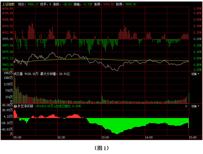 如图1所示,今日早间大盘低开接近30个点,盘中指数虽有反弹动作,但力度很弱,以致市场刚刚接近3980点就遇到阻力,无法进一步向上回升,午后大盘一度跌破3960点,好在并未出现持续杀跌,指数及时回稳,并围绕着3965点展开窄幅震荡整理,最终以3966点收盘。从下方的多空资金来看,早间开盘后,多方率先占据优势,但资金进场的持续性不强,于是空方趁机频频施压,午后资金更是一直保持着翻绿状态。可见在昨日市场出现强劲反弹之后,今日多方后续力量并没有及时跟上,导致空方再度施压。不过这并非完全是坏事,毕竟昨日有巨量资金进场,短时间内不可能全面撤离,所以后市行情仍会有上攻动作。而今日行情出现反复时,虽有资金出逃的板块,但也有资金持续加仓的板块,由此我们就可轻易分辨出主力的偏好,在资金持续加仓的板块中去优选个股,择机介入。