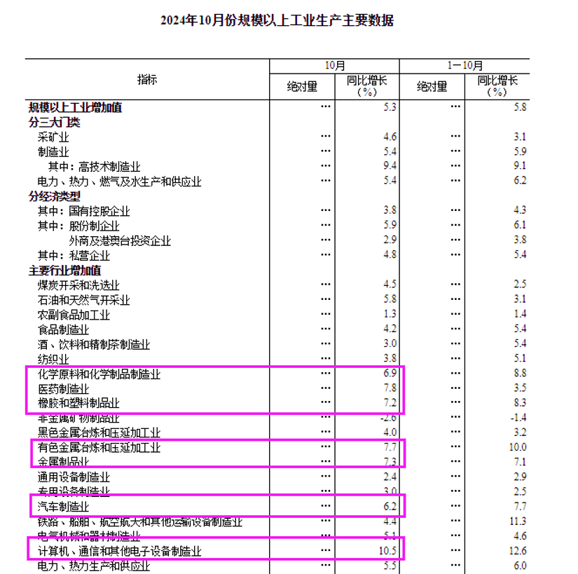 11月15日,国家统计局发布10月份经济数据,工业增加值、消费、服务业等主要经济指标明显回升。具体的经济数据增长趋势如何?哪些行业增长较快?本文摘取部分重要信息如下: